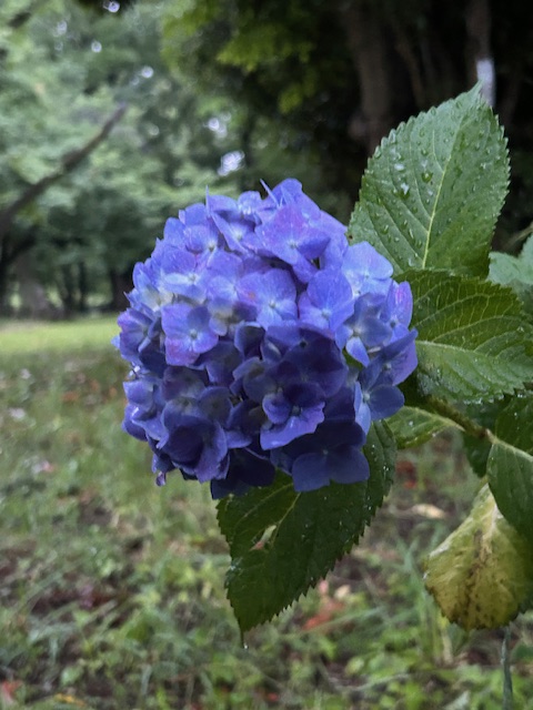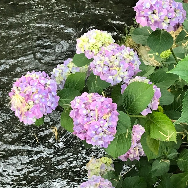 我々が普段目にする紫陽花の多くは、日本に自生する原種ガクアジサイから改良した園芸品種。開花期は梅雨時の6~7月で、額咲き、手まり咲きなどがある。このうち額咲きは、額の花として歳時記に別に掲載されているので、俳句で紫陽花といえば、手まり咲きの花を指す。土壌の酸度によって青色になったり、ピンク色になったりする。雨に打たれて他の花が萎えている中で、紫陽花が生き生きと咲いているのは印象的だ。