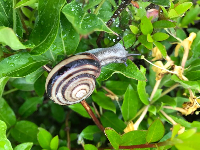 「蝸牛」はその愛嬌ある姿から童謡にも唄われ、人間の身近にいる生き物の一つだが、近年は目にする機会が減っている。それでも、雨が続いた日の生垣の葉の上などにその姿を見掛けることがある。