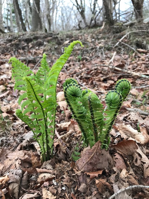 下の写真は、水楢の林に生えたオニゼンマイ。