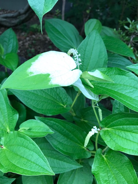 ドクダミ科ハンゲショウ属の多年草。低地の水辺や湿地に群生するほか、観賞用としても植えられる。先のとがった卵形の葉は 互生し、6、7月に白い小花からなる尾状の花穂をつける。花期の頃葉の半分が白くなるが、花が咲き終わる夏の盛りの頃になると、葉の白い部分は薄れて、全体が緑になる。半夏生ともいうが、時候の季語である七十二候の「半夏生」とときに紛らわしいこともある。