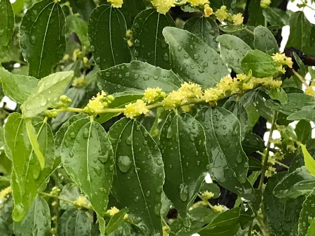 棗(なつめ)は西アジアから欧州南部原産のクロウメモドキ科ナツメ科の落葉小高木。古く中国から日本に渡来したが、中国では李、杏、桃、栗と並んで漢方薬の五果の一つ。芽が出るのが初夏なので夏芽という。5、6月に葉の根元に淡黄色の小花をつける。目立たない花だが、そこに味わいを感じる人もいるだろう。