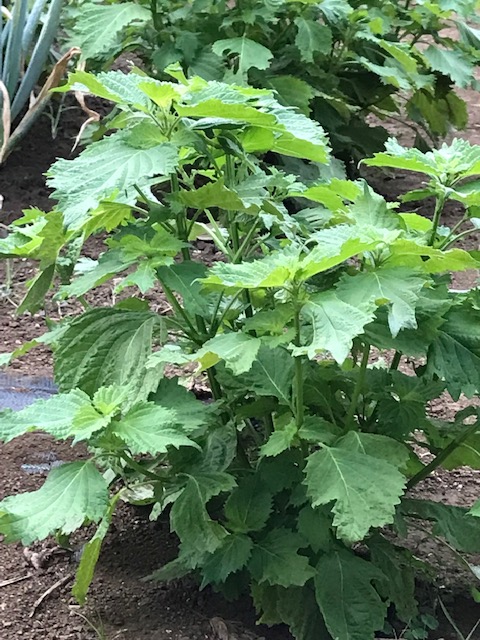 上の写真は青紫蘇、下の写真は赤紫蘇。