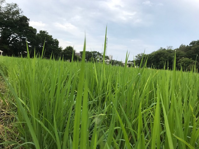 苗が生長して、まだ穂が出ない状態の田圃をいう。日々生長していく青々とした稲に水が覆われる。田は、代田→植田→青田→稲田→刈田と移っていくが、そのうち代田、植田、青田が夏の季語。植田から青田へ変わるのに一月も要しない。田園地帯は青ひと色に変貌し、吹き渡っていく風が心地よい。稲は丈を増しながら、8月下旬以降出穂期を迎える。