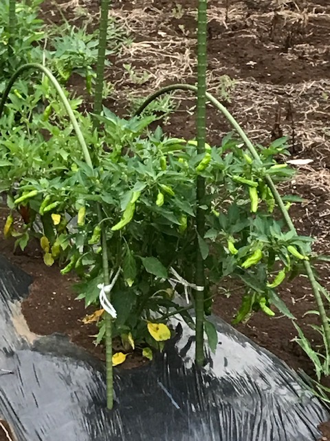 中南米を原産とするナス科の一年草。辛みを特徴とする唐辛子だが、様々な品種があり、ピーマン、シシトウガラシ、パプリカなど辛味がほとんどない甘味種も含まれる。夏に白い花をつけた後青い実がなるが、秋には赤く色づく。葉にも辛みがあり、葉唐辛子として利用される。「青唐辛子」、「唐辛子の花」は夏の季語。