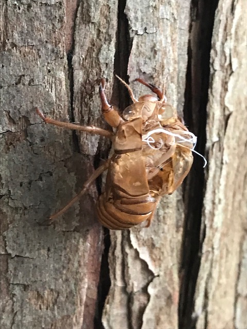脱皮した蝉のぬけ殻のこと。蝉の幼虫は3~10年ほど地中で過ごして蛹となり、その後地表に出て成虫となる。夏、地上に出てきて最後の脱皮を行い残った殻を「空蝉」、「蝉の殻」などという。殻には眼や節の一つ一つの跡が精緻に残る。