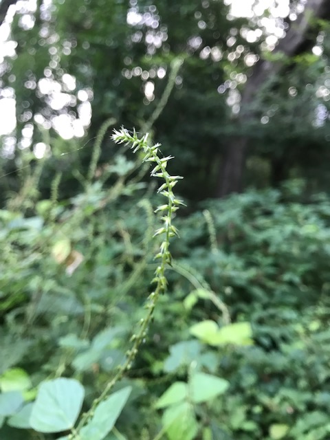 ヒユ科の多年草。茎の節が膨らんでいて、猪子の膝のように見えることから、これを槌に見立ててこの名がついたという。日本の本州以南に自生。山野の木陰や竹薮などによく見かける。葉は楕円形で対生し、茎全体に毛がある。地味で目立たない淡緑色の小花が穂状に咲いた後、小さな実を結ぶが、刺があって衣服などにつきやすい。