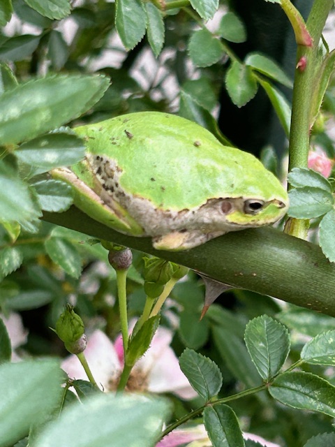 無尾目アマガエル科の蛙。アオガエルに似ているが、体長約3~4センチとアオガエルよりやや小さい。肢先に円盤状の吸盤があり、葉や幹に吸い付いて樹上や草の上にすむ。雨が近づいたり降ったりすると、鳴き出す習性がある。葉の上では緑色、木の幹や地上では灰褐色に皮膚が変わる(保護色)。