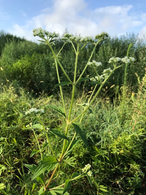 オミナエシ科の多年草で、草地や林縁など、山野の日当たりのよいところに自生する。初秋の頃、散房状に白く小さな五弁花を多数つける。女郎花(おみなえし)に似ているが、黄花を優美に咲かせる女郎花に比べて、花の色が白く地味で,茎や葉が大きく逞しいことから、男郎花とよばれる。