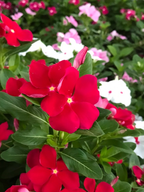 マダガスカル島原産のキョウチクトウ科の一年草。日本には園芸種として渡来。夏から秋にかけて次々と咲き続ける。色は白、ピンク、赤、赤紫などで、花弁は先が5つに分かれる。新しい花を次々咲かせ、毎日花が絶えないことからこの名がある。