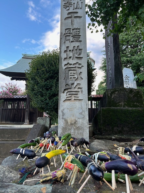 盂蘭盆(うらぼん)のときにナスやキュウリに苧殻の脚をつけ、馬や牛とする。精霊馬ともいわれる。魂棚や家の前、墓地の入り口などに置く。魂(祖先の霊)はこの乗り物に乗って家に戻り、また帰って行く。家に戻って来るときは家に向け(迎馬)、帰って行くときは外に向けて置く(送馬)。