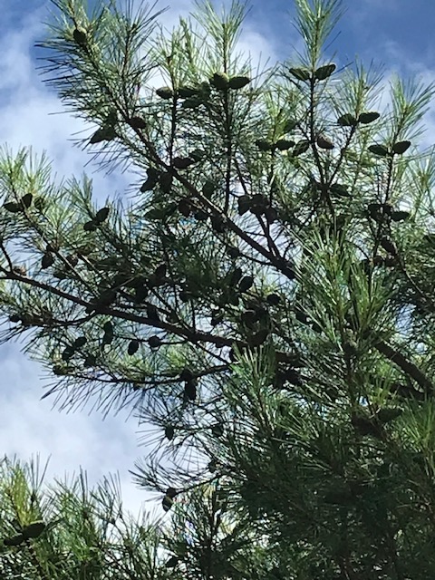 その年に新しくできた松毬(松の実)のこと。鱗片がびっしりと隙間なく詰まり、青々として匂いたつようだ。やがて松ぼっくりとなって熟すと、鱗片が開き種がこぼれる。