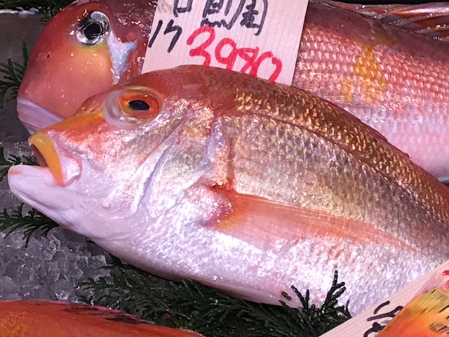 スズキ目アマダイ科に属する。体長30~50センチ。赤甘鯛、黄甘鯛、白甘鯛の三種があるが、釣りや料理で親しまれているのは赤甘鯛。味噌漬けのほか、塩焼きや照焼きにして食す。関西では薄塩を振り鮮度を保ったものを「ぐじ」とよぶ。釣りのベストシーズンは晩秋から冬。