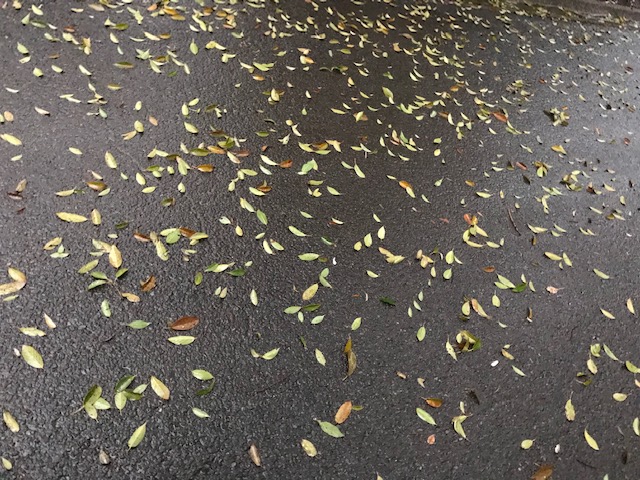 落葉樹は初冬に葉を落とすが、松、檜、椎、樫などの常緑樹は、晩春の頃、新しい葉が芽吹いてくるのと交替するように古い葉を落とす。余り目立つものではなく、気がつくと木の下に落ち溜まっている。単に「落葉」といえば冬季。