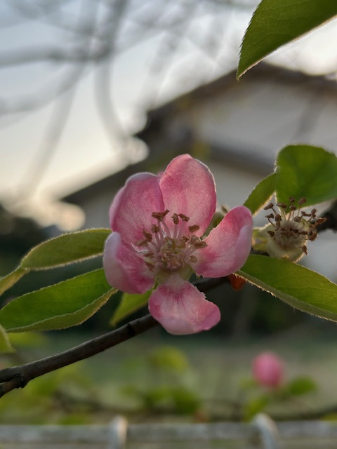 中国原産のバラ科ボケ属の落葉高木で、江戸時代初期に日本に渡来。晩春の頃、枝先に淡紅色の五弁花を一つずつ咲かせる。秋に握り拳大の楕円形の実をつける。生食はできないが、砂糖漬けや榠樝酒、のど飴、利尿剤等として用いられる。
