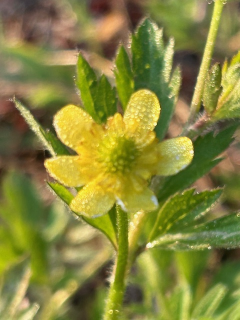 キンポウゲ科の二年草。全国の畦や道端、野原、山麓などの湿ったところに自生する。葉は何枚かに裂けて縁に鋸歯があり、牡丹の葉に似ていることからこの名がある。晩春の頃、1センチほどの黄色い五弁の花をつける。花の後、金平糖のような球形の実ができる。