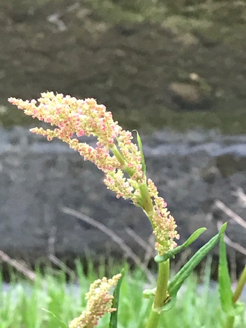 タデ科ギシギシ属の多年草。別名すかんぽ。全国の田の畦、土手、草地などに自生。すっぱい葉が転訛してスイバになったという。晩春から初夏に花をつける。雌雄異株。若い茎や若葉は酢味噌和え・塩漬けなど食用になる。