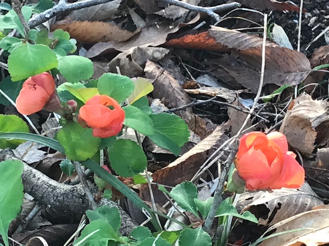 バラ科の落葉小低木で山野に自生。庭木の木瓜(ぼけ)ほど大きくならず、晩春の頃、草に隠れるように咲く。花は一重の朱色の五弁花だが、八重咲きや白・黄色の花が咲く品種(変種)もある。別名草木瓜、地梨。