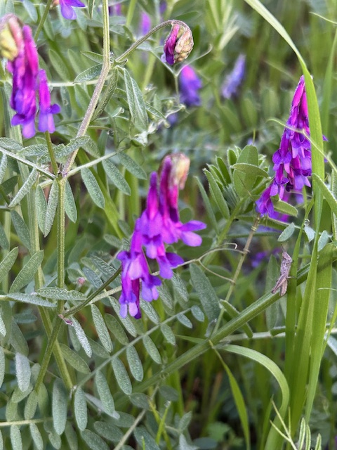 マメ科の蔓性多年草。全国の原野や山麓などの草地に生える。初夏・仲夏のころ、葉腋から花穂を上向きに出し、赤紫色の蝶形花を密集して咲かせる。緑肥(田畑の肥料)や牧草として利用されることもある。