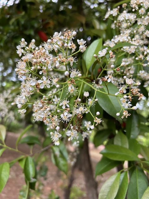 要(かなめ)はバラ科の落葉小高木。標準和名は「カナメモチ」。暖地に自生するほか、庭木や生垣として植えられる。5、6月頃、蕎麦の花に似た多数の小白花を房状につける。赤く染まる新芽も印象的だ。