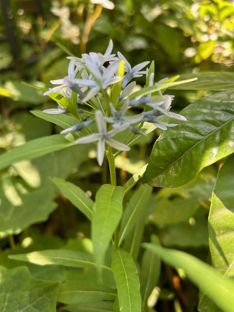 キョウチクトウ科の多年草。川岸や湿った草地などに自生するほか、切り花用などとして栽培される。初夏の頃、茎の先端に「丁」の字に似た淡い青紫の花をつける。