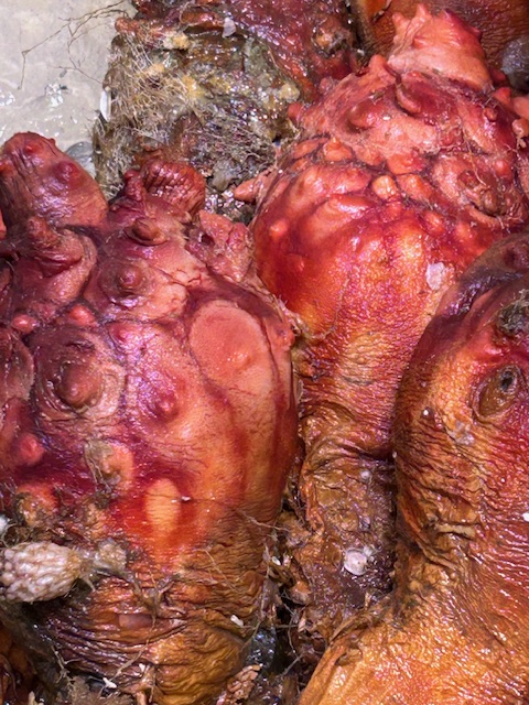 ホヤ目尾索類の総称で、マボヤ、アカボヤ、スボヤなどがある。卵形又は球形の全身が皮状の厚い被嚢を被り、それにイボ状の突起がある。浅い海の岩や海藻に付着して棲息する。酢の物や吸物にして食べる。