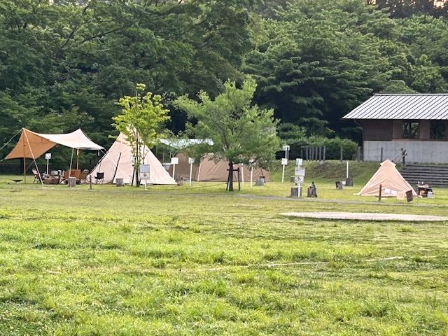 山・高原・海辺などの自然の中で野営すること。キャンピング(天幕生活)の略語。自然に親しむために、天幕を張り自炊をして野外生活を楽しむ。夜は、かがり火を焚き、それを囲んで合唱やフォークダンスなどに興じることも多い。