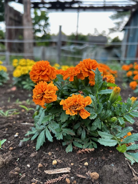 メキシコ原産のキク科の一年草。栽培しやすいことから花壇や庭先などに植栽されるほか、線虫の駆除効果があるので、野菜畑に一緒に植えられることもある。黄色と紅色の花を持つことから「紅黄草(こうおうそう)」と名づけられたが、一般的にはマリーゴールドの名で知られる。夏、枝先に菊に似た球状の頭花をつける。