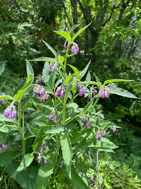 ヨーロッパ原産のムラサキ科の多年草。漢字表記では「鰭玻璃草」。明治時代に導入され、食用・薬用として栽培されていたが、その後野生化した。夏、釣鐘形の花を多数つける。花色は多くは紫だが、白、淡黄色、淡紅色のものもある。