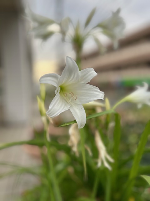 浜木綿(はまゆう)はインド周辺原産のヒガンバナ科の常緑の大形多年草。関東以南の海岸に自生するほか、公園や庭に植えられる。盛夏の頃、葉間から花茎を立て、茎頂に芳香のある白い花を傘形に咲かせる。別名「浜万年青(はまおもと)」。