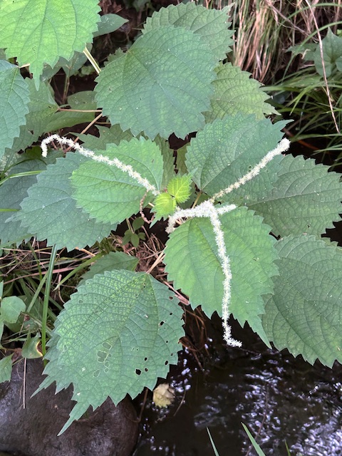 イラクサ科カラムシ属の多年草。本州から四国・九州の山野に自生する。昔は繊維を採るために栽培したが現在では野生化している晩夏初秋の頃、淡緑色の花穂をつける。雌雄同株で、茎の上部につくのは雌花、また、茎の下部につくのは雄花。茎(から)を蒸して皮をはぎ、繊維を採ったことからこの名がある。