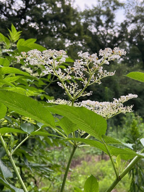 スイカズラ科ニワトコ属の多年草。別名、クサニワトコ(草接骨木)。本州以南に分布し、山野の林縁、道端などに自生する。晩夏の頃、草丈1メートル以上になる茎の先端に大型の散房状の白い小花を咲かせる。葉には、さまざまな薬効があるといわれる。歳時記には掲載されていない。