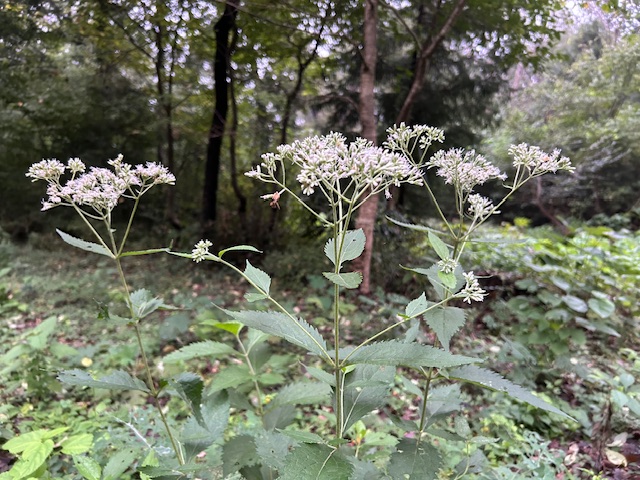 キク科ヒヨドリバナ属の多年草。日本の在来種で、全国の山野の草地や林縁に自生する。8~10月に散房状に白又は淡紫色の頭状花を咲かせる。フジバカマに似ているが、葉がフジバカマのように三裂しないことから区別できる。秋、ヒヨドリが鳴く頃に開花することからこの名がある。別名「山蘭」。