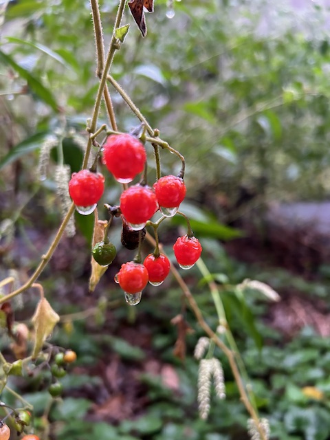 ナス科の蔓性多年草。丘陵帯の林縁部、原野、道端などにごく普通に自生する。夏から秋にかけて白い小花を咲かせた後、晩秋の頃実が赤く熟す。実を鵯が好んで食べることから、また、赤い実を、酒に強い人(上戸)の酔った顔に見立ててこの名になったという。