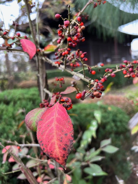 錦木(にしきぎ)はニシキギ科の落葉低木。紅葉や赤い実が鮮やかなので秋の季語。庭木や生垣に植えられるほか、端山などにも自生する。5~7月に淡緑色の目立たない花をつけた後、秋に朱色の実ができる。「錦木の実」は「錦木」の傍題。