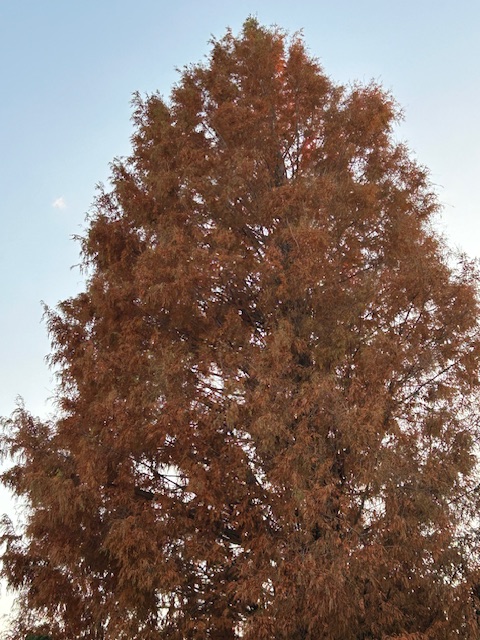 紅葉(もみじ)というと楓を指すことが多いが、その他の木を含めて総称することも多い。種類によって、櫨紅葉、桜紅葉、漆紅葉、柿紅葉など、木の名前の下に紅葉をつけて特定することもある。メタセコイアは中国原産のヒノキ科の落葉針葉樹で、公園や街路に植えられる。秋の紅葉は時間が経つにつれて淡い橙色からレンガ色、赤茶色へと色が変化する。