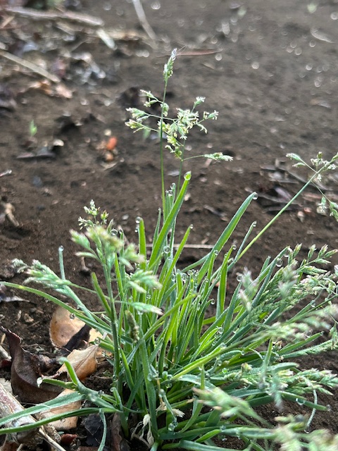 イネ科の一、二年草。全国の野原、空き地、路傍、田畑付近などに自生する。雀は小さいことの譬えで、帷子は単衣の着物の意。晩春の頃、淡緑色の卵形の穂を円錐状につける。近縁種も多い。