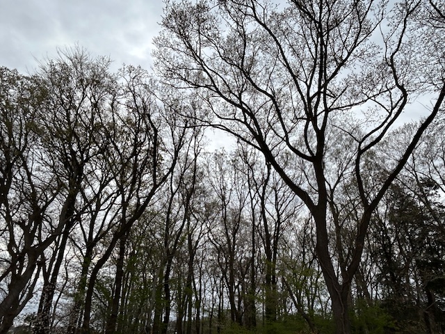 春先の萌え出たばかりの広葉樹林。一般的に雑木林と呼ばれているように、様々な樹種が混在しており、それら樹種ごとに芽吹きの色は黄、黄緑、赤緑、浅緑などと多彩。若芽には昆虫が群がり、それらを鳥たちが食べ子育てを行うために、活気に溢れた森となる。比較的新しい季語。