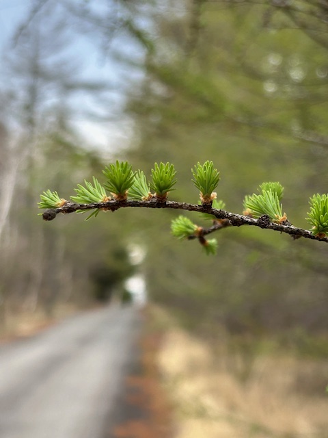 「落葉松(からまつ)」は日本固有のマツ科の落葉針葉樹。日本産針葉樹の中では唯一の落葉樹である。本州中央部の山地に自生するほか、寒冷地で大規模な造林も行われた。唐絵(中国の絵画)のマツに似ていることが名前の由来で、「唐松」とも表記する。春、けぶるように早緑(さみどり)の新芽を伸ばす。「木の芽」(春季)の傍題。「落葉松散る」は冬の季語。