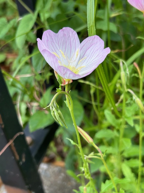 北米原産のアカバナ科マツヨイグサ属の多年草。日本には観賞用として大正末期頃に渡来したが、今では野生化している。初夏の頃、薄いピンク色のカップ型の花を咲かせる。ツキミソウの仲間だが、宵に開花する「月見草」(夏季)に対して、昼に花が咲くことからこの名がある。