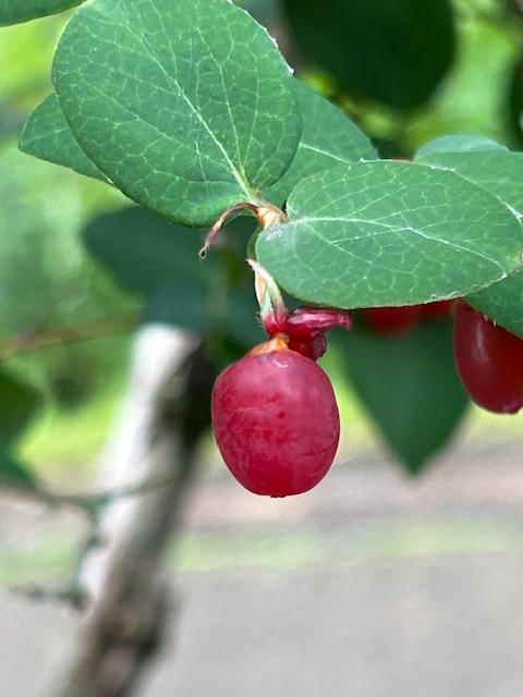 「鶯神楽(うぐいすかぐら)」はスイカズラ科の落葉低木。北海道南部以南の全国に分布する。早春の頃ラッパ型の小花が一輪ずつ下向きに咲いた後、初夏に実が赤く熟す。ほのかな甘みがあって生食できる。アズキグミ、アズキイチゴ、マメイチゴなどの地方名がある。なお、歳時記には掲載されていない。