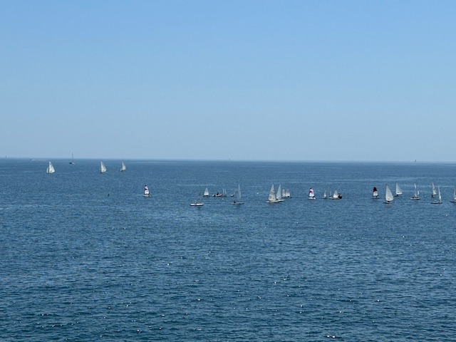 三角の帆に風をはらんで進む小型の西洋式帆船。大洋を巡航するための大型のものもある。夏のレジャーの一つで、スポーツ競技としてオリンピックの正式種目にもなっている。