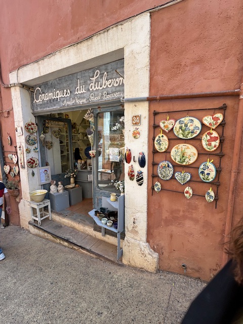 ルシヨンは人口千人余り。小一時間歩けば村内の大方は巡ることができ、ところどころにアトリエやギャラリー、陶芸工房、民芸店、レストランなどがあった。家々の壁には葡萄や定家葛の蔓が這い、片蔭に沿って歩き回っていると、頭上で教会の鐘塔が3時を打った。