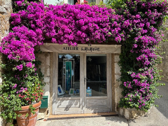 上の写真はサンポール・ド・ヴァンスのとあるアトリエの戸口を飾っていたブーゲンビリア。日本で見かける小ぶりの鉢植えと違って、南仏では野生に帰ったように伸び伸びと咲き盛っていた。ブーゲンビリアは南アフリカ等原産のオシロイバナ科ブーゲンビリア属に属する熱帯性の低木。歳時記には載っていないが、炎えるような夏の日差しを感じさせる花だ。