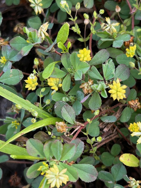 ヨーロッパから西アジア原産のマメ科の多年草。日本では帰化植物として広く自生する。花が米粒のように小さいことからこの名がある。初夏から初秋にかけて黄色い小花を咲かせる。別名「黄花詰草」。シロツメクサ(クローバー)、アカツメクサ、米粒詰草などのマメ科シャジクソウ属の多くの植物を総称して「苜蓿(うまごやし)」(春季)と称することから、「苜蓿」として詠むこともできるだろう。