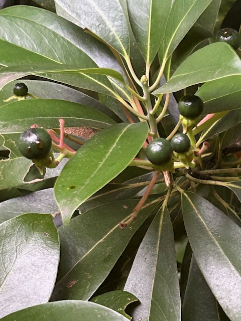 椨(たぶ)はクスノキ科タブノキ属の常緑高木。霊が宿る木とされていたことから「霊(たま)の木」と呼ばれ、それが次第に「たぶのき」に変化していったとされる。暖地の沿海地に多く自生する。初夏の頃淡黄緑の小花が咲き、初秋の頃球形の実が黒紫色に熟す。