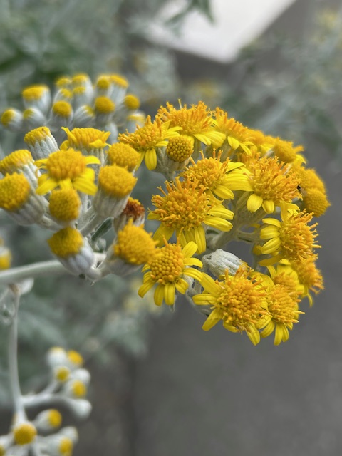 地中海沿岸原産のキク科の耐寒性多年草。葉には白い繊毛が密生しているため、銀白色のシルバーリーフに見えるのが特徴。花よりも葉の美しさが鑑賞されることが多い。初夏に黄色の小さな花を咲かせる。「セネシオ・シネラリア」と呼ばれることもある。一部の歳時記には「シネラリア」(春季)の傍題として載っている。