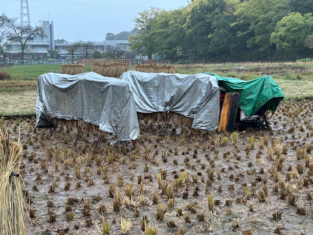 刈り取った稲の穂から、籾(もみ)を扱き取ること 。「脱穀(だっこく)」ともいう。通常は刈り取って稲架(はさ)などで一定期間乾燥させた後、稲の穂から籾を扱き取る。かつては手作業だったが、足踏み稲扱機、電動式脱穀機へと移り、最近は刈りながら脱穀もする稲刈機(コンバイン)が普及している。