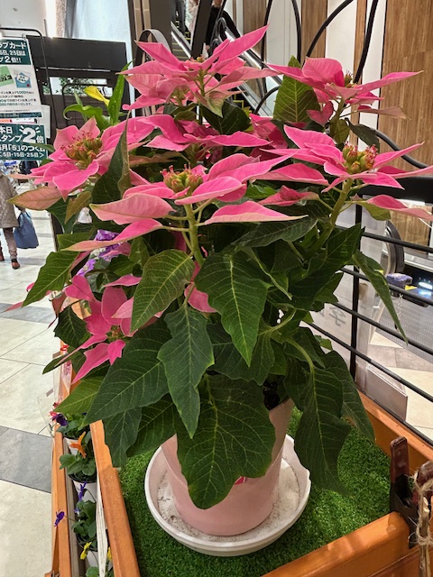 メキシコ原産のトウダイグサ科の常緑低木。「猩々木(しょうじょうぼく)」「クリスマスフラワー」とも呼ばれる。観葉植物として観賞用に栽培されることが多く、クリスマスが近くなると鉢物が花屋に出回る。初冬の頃に茎の上部の苞葉が赤やピンク、乳白色に変色する。黄緑色の小さな花が苞葉の中心に咲くが、目立たない。