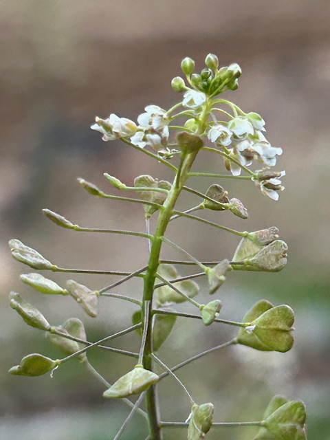 12月下旬の畦に咲いていた薺(なずな)。薺は秋に芽を出し、ロゼット状に地面に貼りついて冬の寒さに耐える。春になると花を咲かせるので春の季語。本来春に咲くはずの花が、暖かい小春日和に誘われて咲いているので、俳句のカテゴリーでいえば返り花。通常返り花といえば、サクラ、ツツジ、ヤマブキなどを思い浮かべることが多いが・・・。