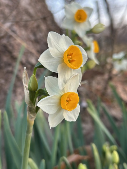 1月13日の朝、雑木林の縁に咲いていた水仙。関東地方の内陸部でも朝晩氷点下になる寒さの厳しい時季である。他の花が少ない厳冬季に花を咲かせるため、「雪中花(せっちゅうか)」とも呼ばる。